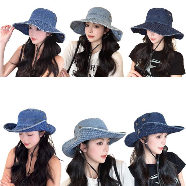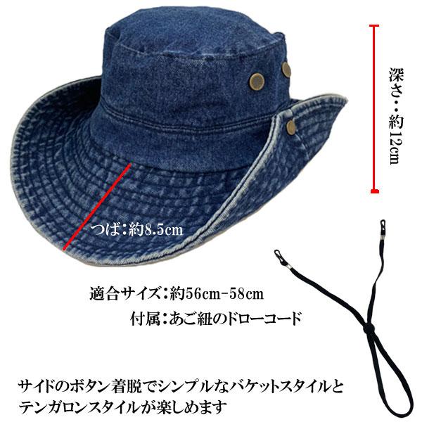デニム サファリハット 帽子 つば広 テンガロンハット アドベンチャーハット シンプル バケットハット メンズ レディース アウトドア HAT 2622