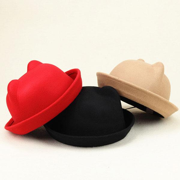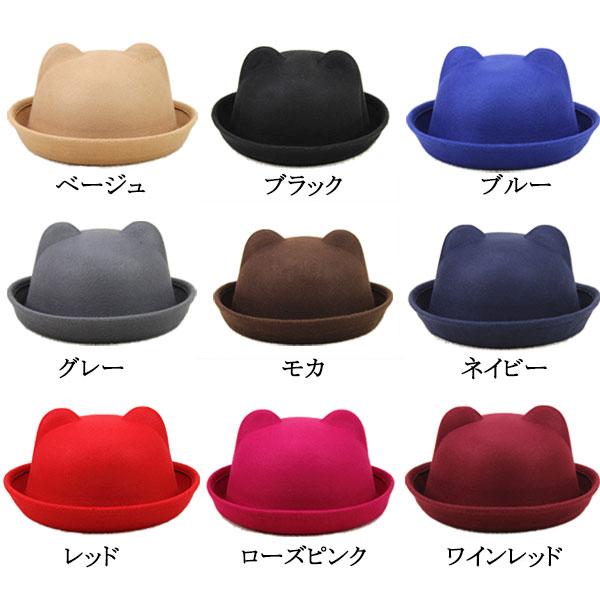 帽子 ボーラーハット フェルトハット 猫耳 ネコ耳 キッズハット メンズ レディース 子供用 フェルト帽 親子帽子 S M HAT 324