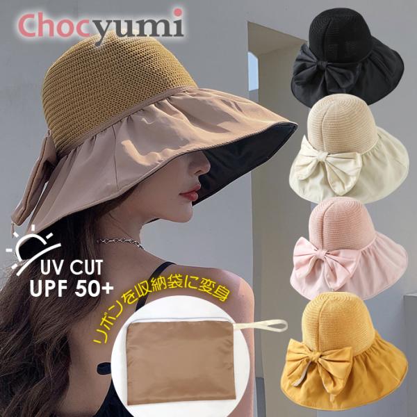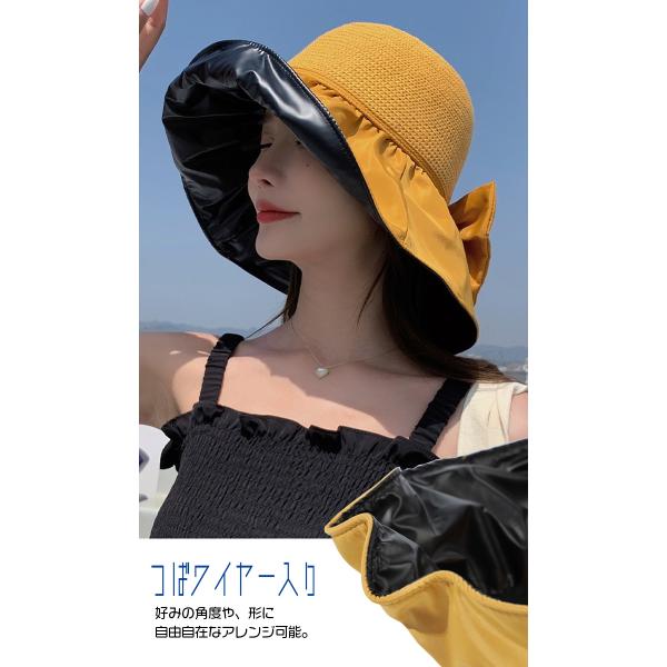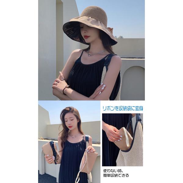 UVカット帽子 日除け帽子 紐 リボン 収納袋付き 折りたたみ つば広 日焼け防止 ハット UV CUT 99% つばワイヤー入り