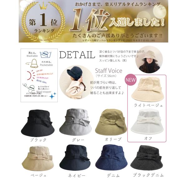 帽子 レディース UV 紫外線カット 小さいサイズ つば広 紐付き 日よけ 折りたたみ 飛ばない 春 夏 秋 秋冬 冬 小顔 すっぴん隠し オックスリボン