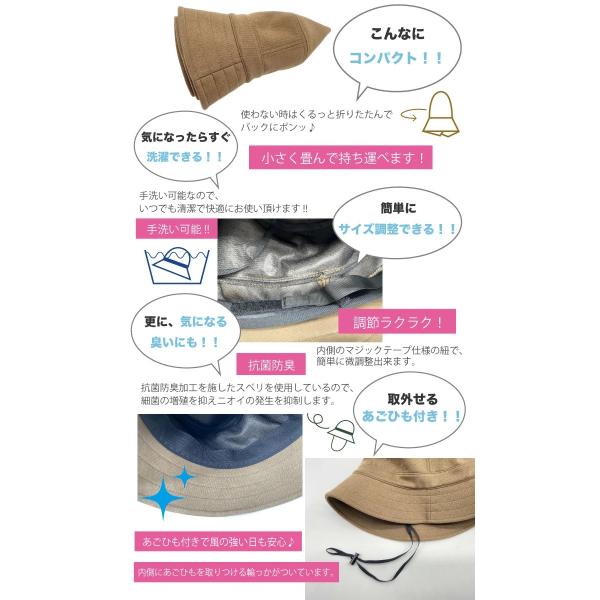 帽子 レディース UV 大きいサイズ つば広 折りたたみ 近赤外線 UPF 遮光 春 夏 飛ばない 涼しい 小顔 すっぴん隠し スエットバケハ