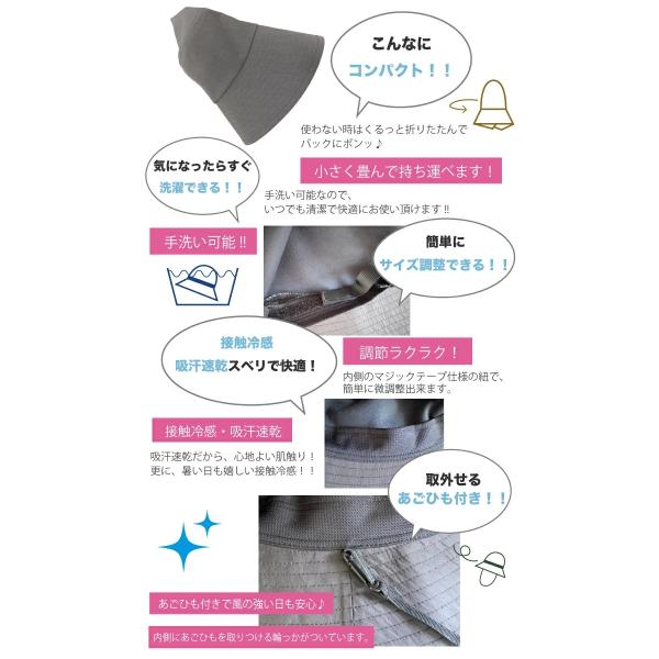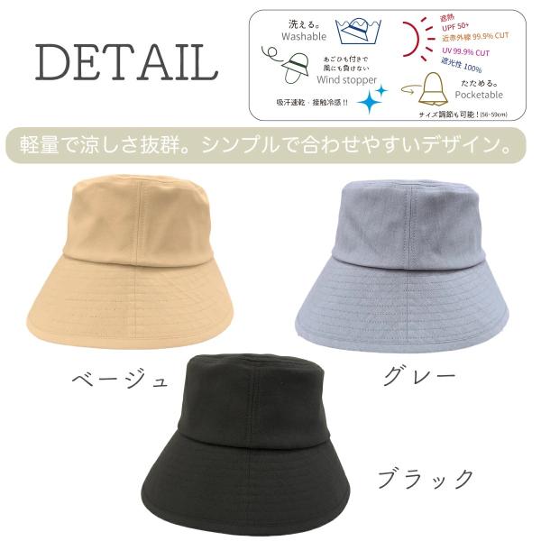 帽子 レディース UV 大きいサイズ つば広 折りたたみ 近赤外線 UPF 遮光 春 夏 飛ばない 涼しい 小顔 すっぴん隠し ポリ前後差