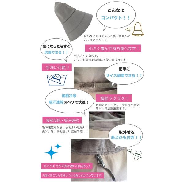 帽子 レディース UV 大きいサイズ つば広 折りたたみ 近赤外線 UPF 遮光 春 夏 飛ばない 涼しい 小顔 すっぴん隠し 広つばダウン