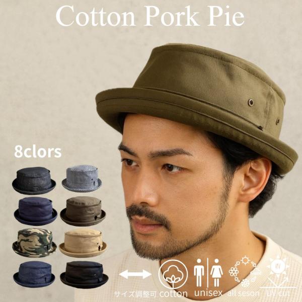 8色展開 帽子 ポークパイ ハット コットン オールシーズン サイズ調整 定番 メンズ レディース スタンダード Mサイズ【店内商品2点以上ご購入で送料無料】