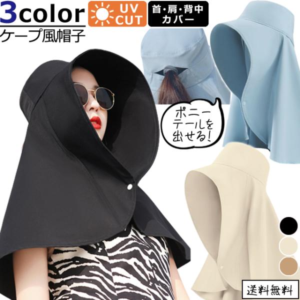「レビュー記入でメール便送料無料」紫外線対策 帽子 つば広 UVカット ケープ レディース 日よけ 遮光 アウトドア スポーツ GPT gu1c046-mail(gu1c047)