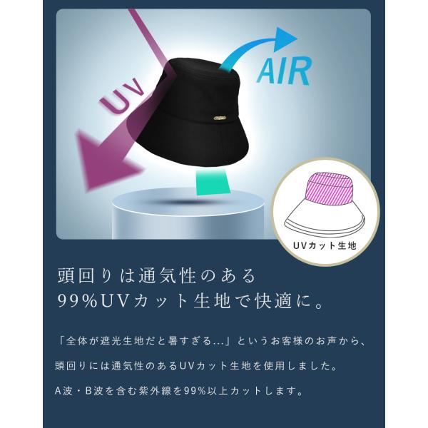 100%遮光 帽子 レディース バケットハット つば広 UVカット おしゃれ 通気性あり 接触冷感 撥水 制菌