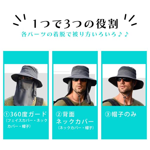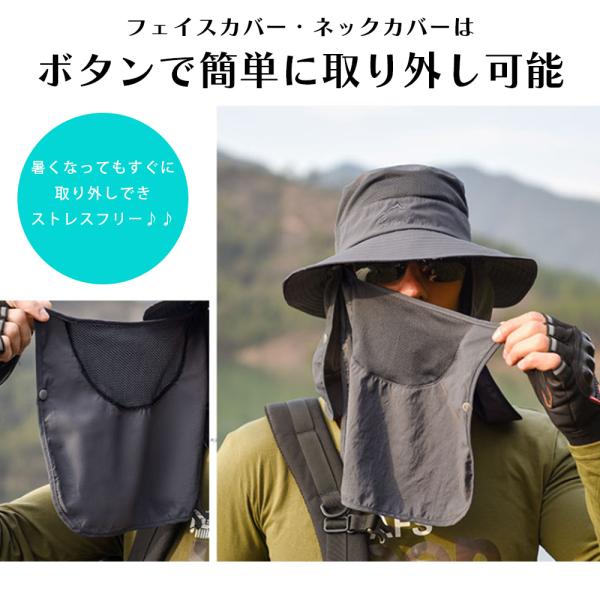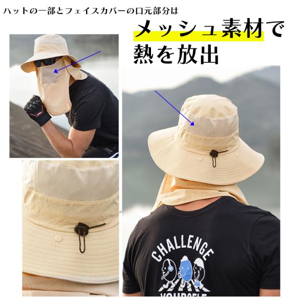 帽子 レディース 紐付き つば広 uvカット フェイスカバー メンズ uv 360° 日よけ サファリハット おしゃれ 涼しい 撥水 防水 日焼け防止 折りたたみ
