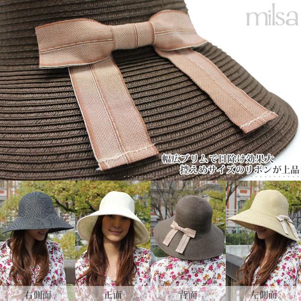 帽子 つば広 レディース 春夏 リボン 女優帽 UV ペーパーブレード キャペリンハット