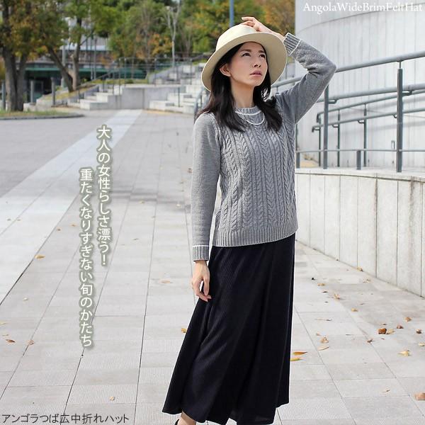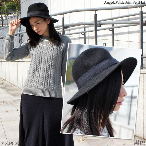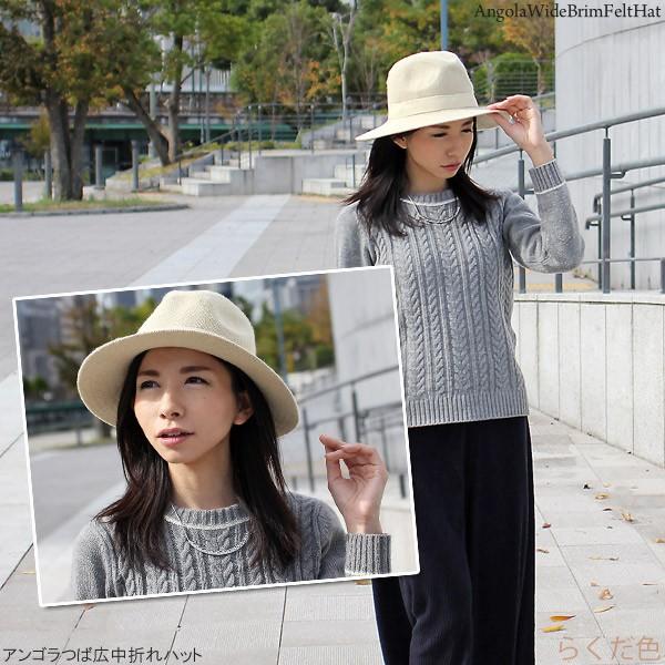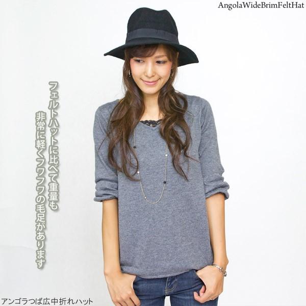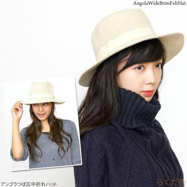 アンゴラ つば広 中折れハット 帽子 レディース 秋冬