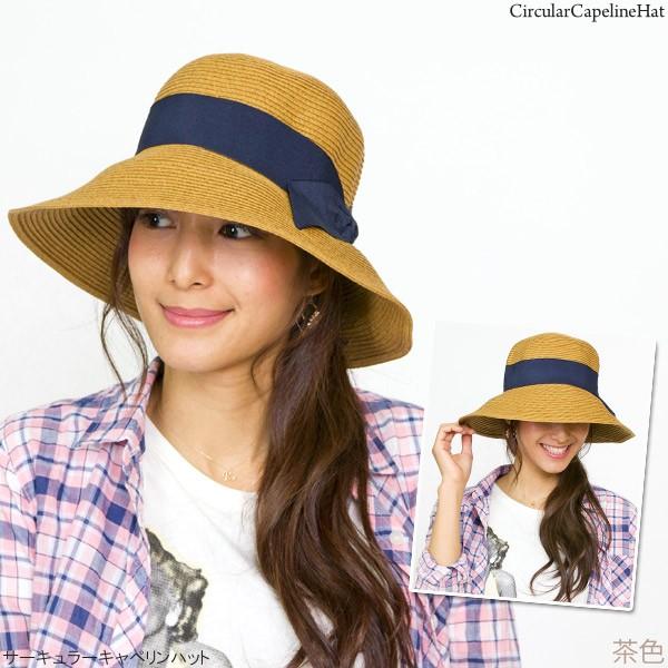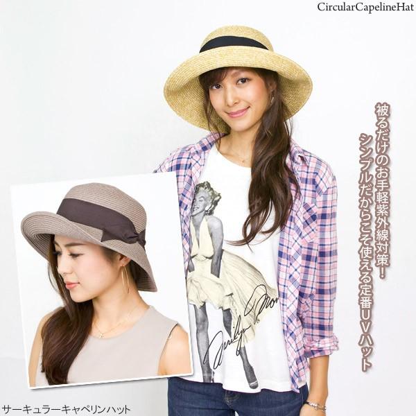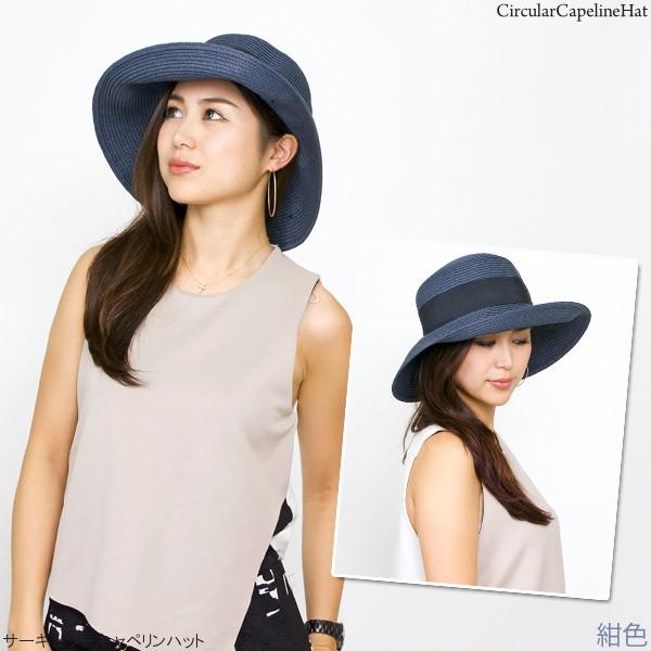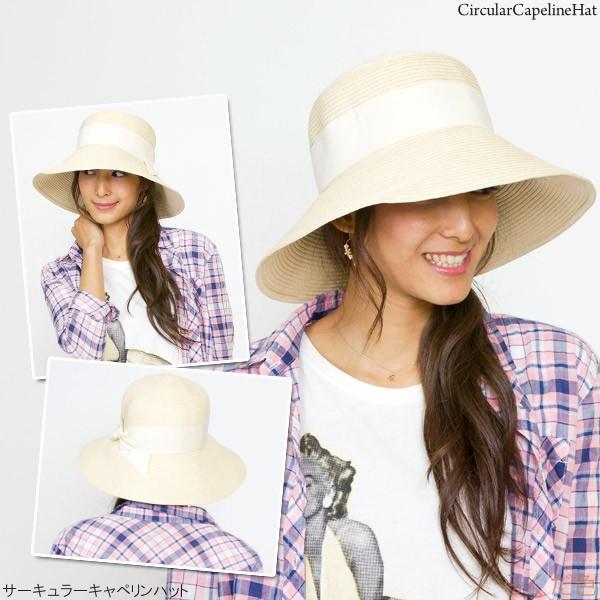 麦わら帽子 レディース つば広 ハット UV対策 サーキュラーキャペリンハット
