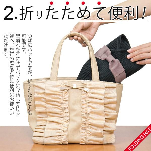 洗えるハット レディース 麦わら帽子 つば広 UV 折りたたみ スリット