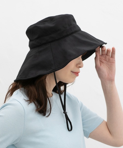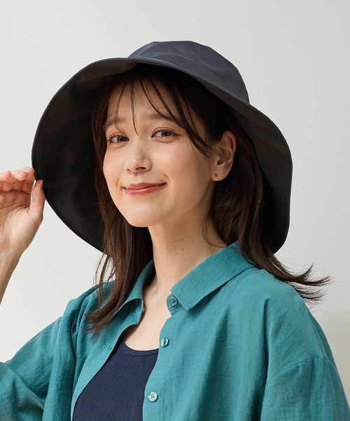 帽子 ハット 「接触冷感・吸水速乾・UVカット・遮熱」遮光100%つば広ハット レディース