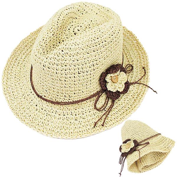 麦わら帽子 レディース コサージュ付き 中折れ ストローハット 折りたたみ ハット 婦人帽 紫外線対策 UVカット 日よけ 帽子 上品 おしゃれ 春 夏 HAT 6632