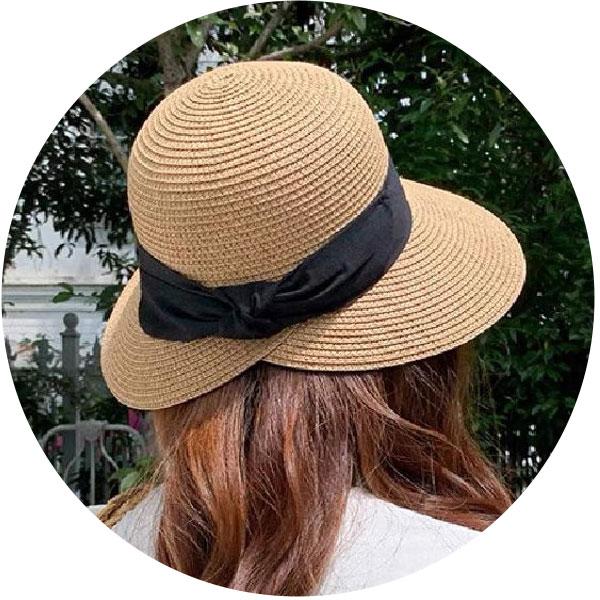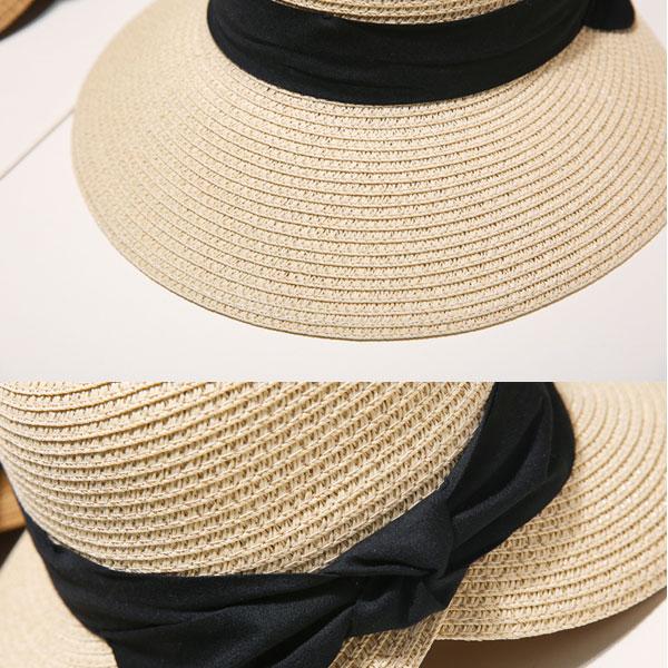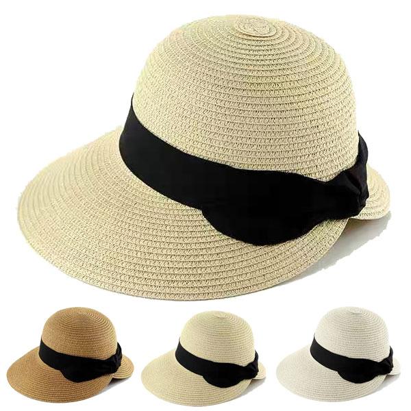 麦わら帽子 つば広 サンバイザー レディースハット バック蝶リボン 帽子 ストローハット UVカット 日よけ 夏 秋 STRAW HAT 6650
