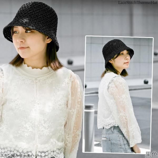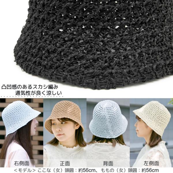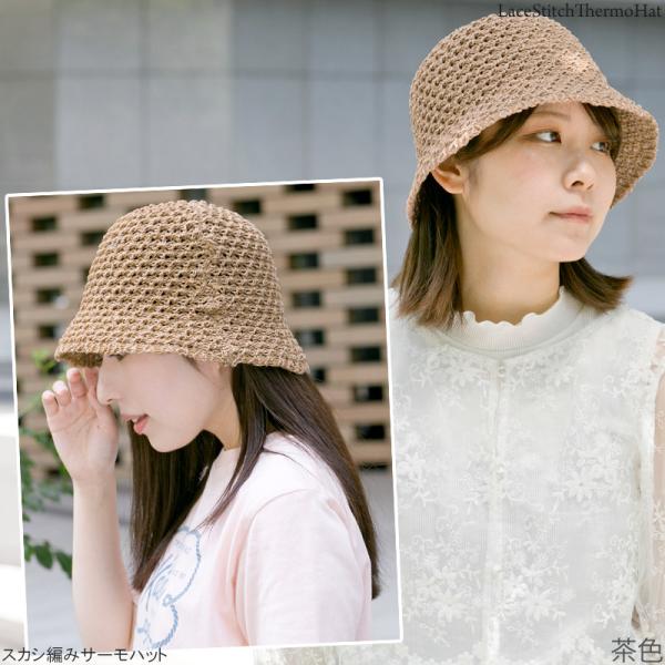 麦わら帽子 レディース 春夏 涼しい 熱中症対策 スカシ編み サーモハット