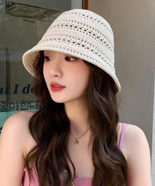 帽子 ハット 「2026春夏新作」透かし編みクロシェハット レディース