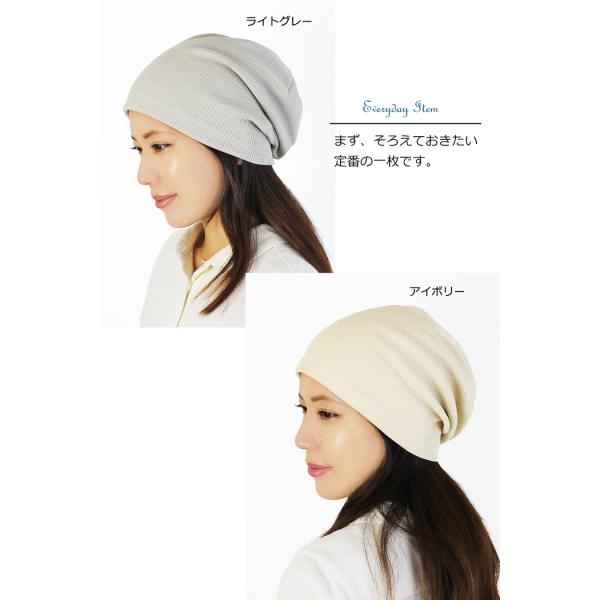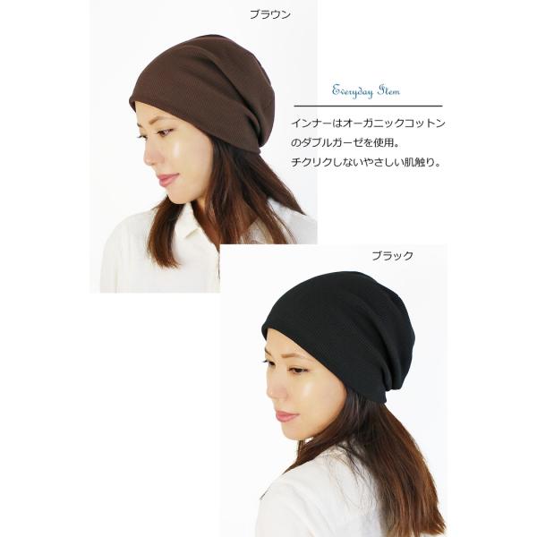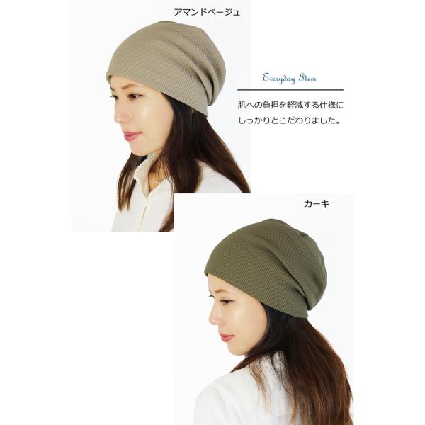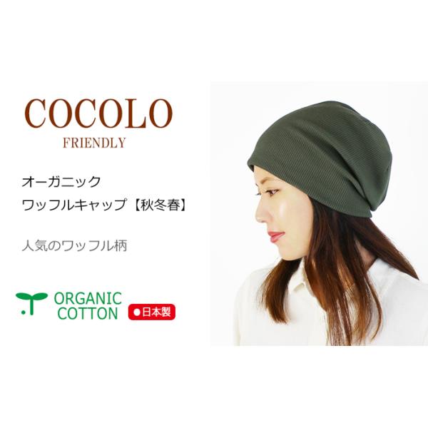 医療用帽子 【秋冬春】オーガニック ワッフルキャップ【ゆったりサイズ】【日本製】【メール便送料無料】 抗がん剤帽子 脱毛 介護 白髪隠
