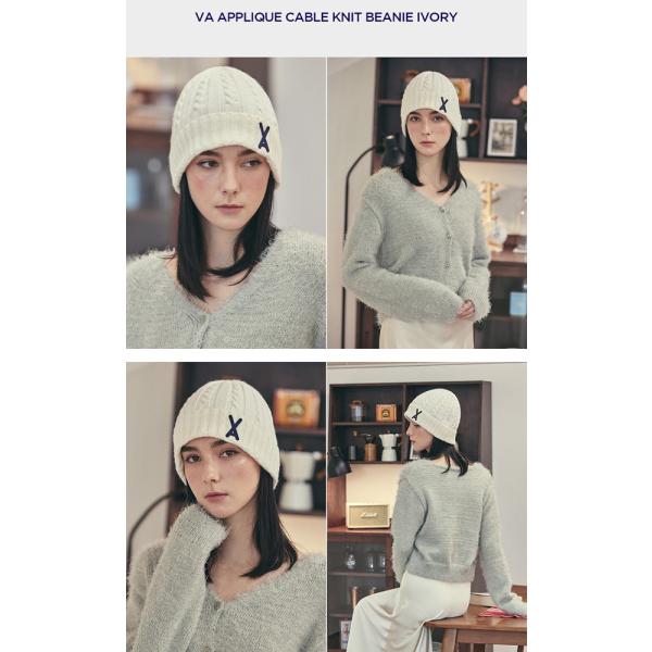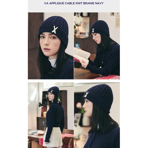 正規販売店 VARZAR バザール ニットキャップ 帽子 ビーニー ニット帽 ケーブルニット 韓国ブランド 小顔HAT 秋冬モデル VA Applique Cable Knit Beanie