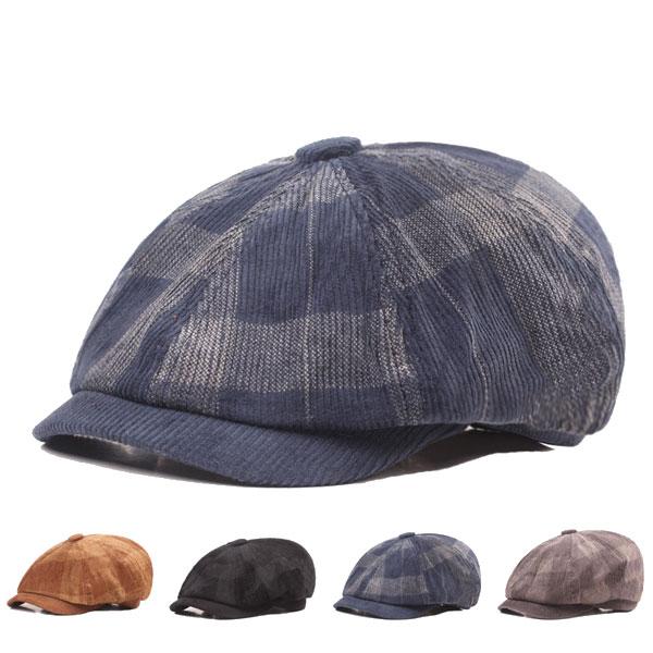 秋冬 チェック柄 キャスケット 帽子 コーデュロイ レディース メンズ CAP 1345