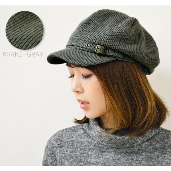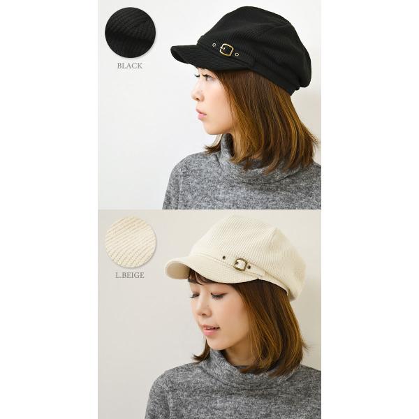 ニットキャスケット レディース 帽子 コットンニット 生地 飾りベルト付き 春夏 秋冬 つば付き メール便×1