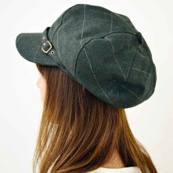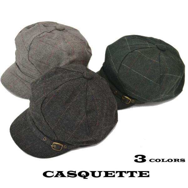 キャスケット (メール便 選択で 送料無料 ) 帽子 キャスケット 格子 チェック ウール混 飾りベルト付き レディース 秋冬 メール便×1 115102
