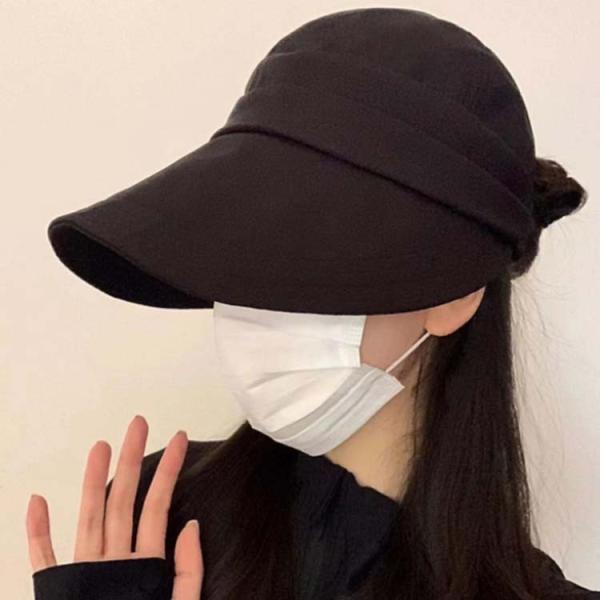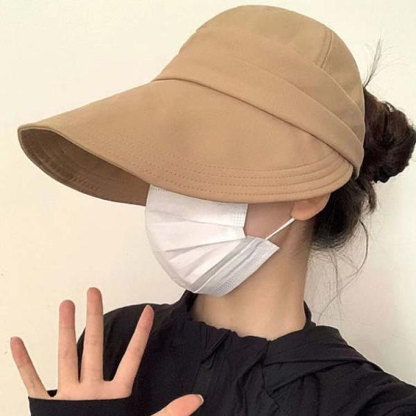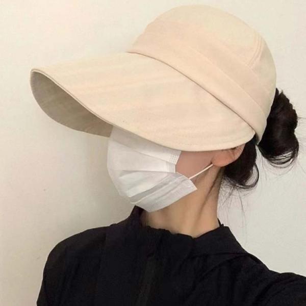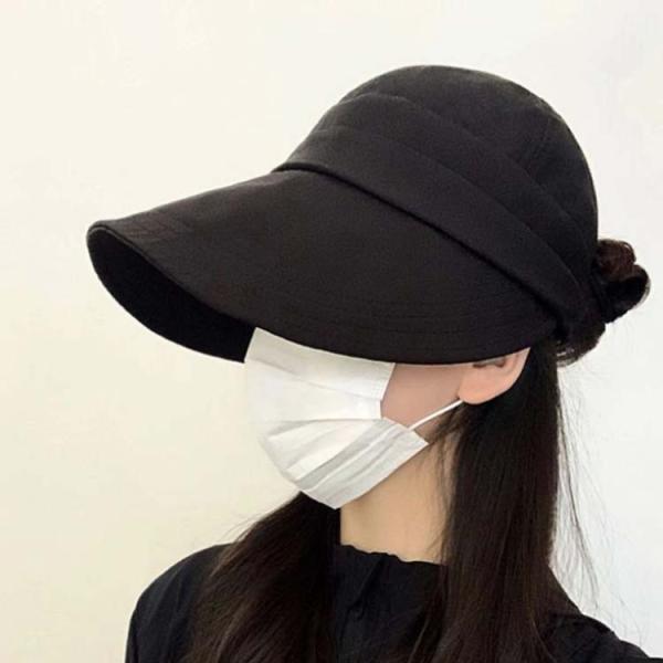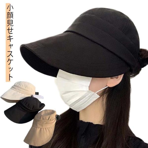 レディース サンバイザー 帽子 つば広 キャスケット UPF50 帽子 髪の毛を結んだままかぶれる キャップ ポニーテール ツバ広キャスケット 飛ば