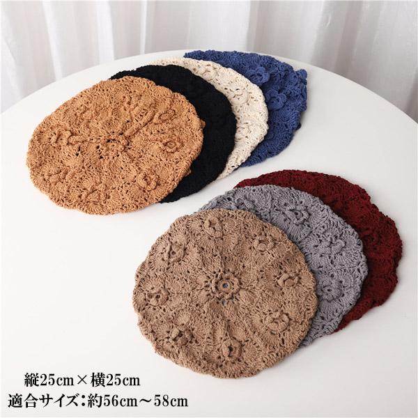 ベレー帽 レディース かぎ針 クロシェ コットン 春夏 ニット帽 透かし編み 花 モチーフ CAP 3411