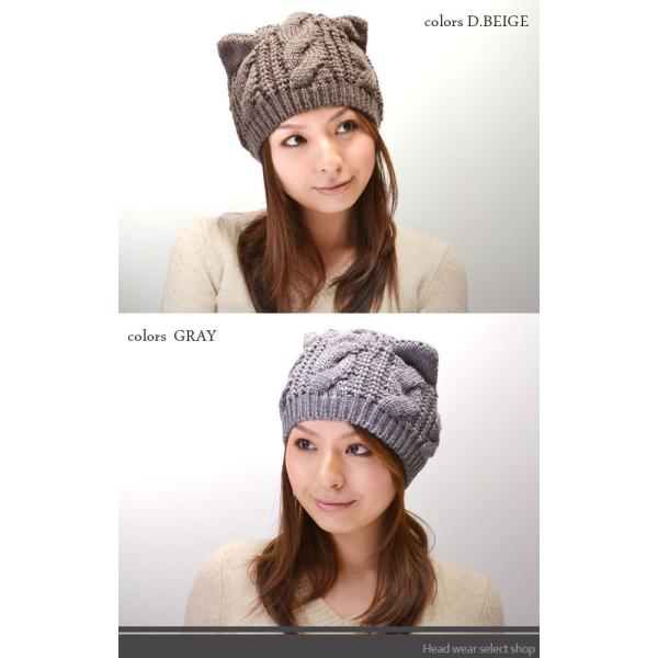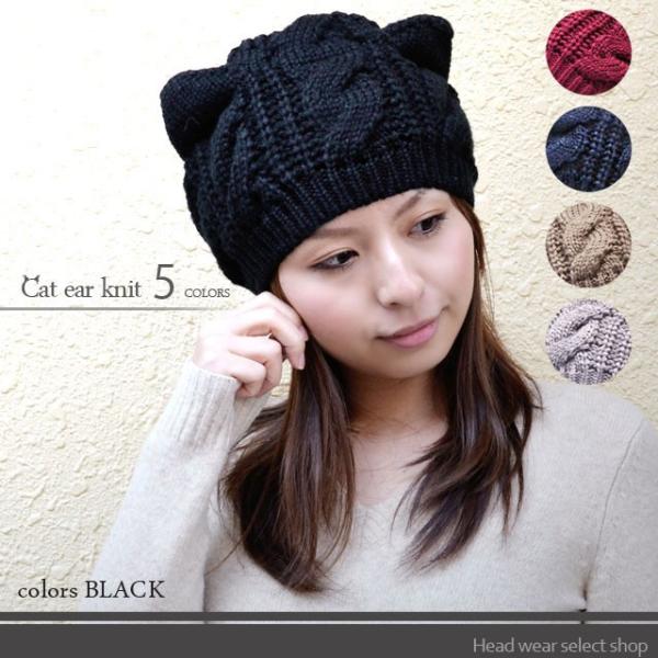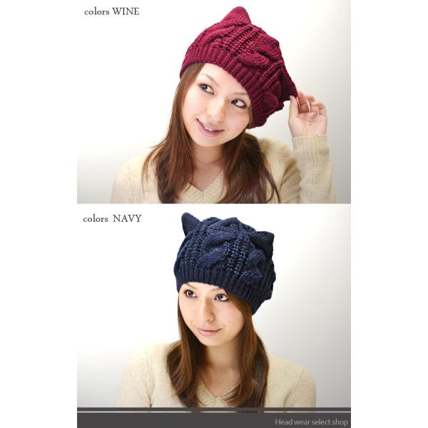ベレー帽 レディース 【メール便のみ 送料無料 】 帽子 耳付き ケーブル編み 全5色!ベレー ニット ベレー 秋冬 メール便×1