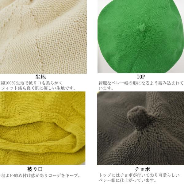 ベレー帽 レディース 【メール便のみ 送料無料 】 帽子 コットン ニットベレー (フリーサイズ:頭回り56.5-57.5cm) 薄手 爆買 ニット帽 春夏 サマーニット