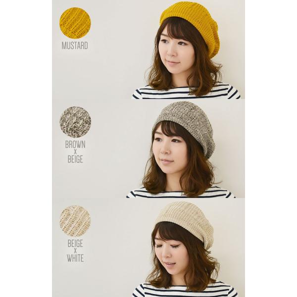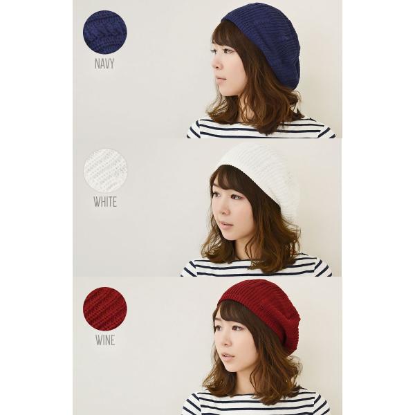 ベレー帽 レディース 【メール便のみ 送料無料 】 帽子 ニット コットン 綿 100% 細ケーブル編み模様 春夏 爆買