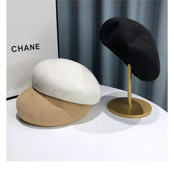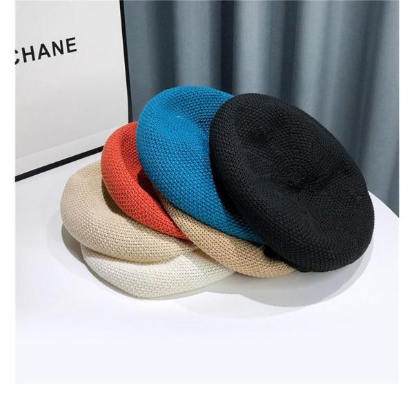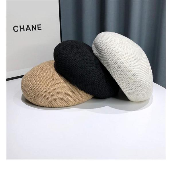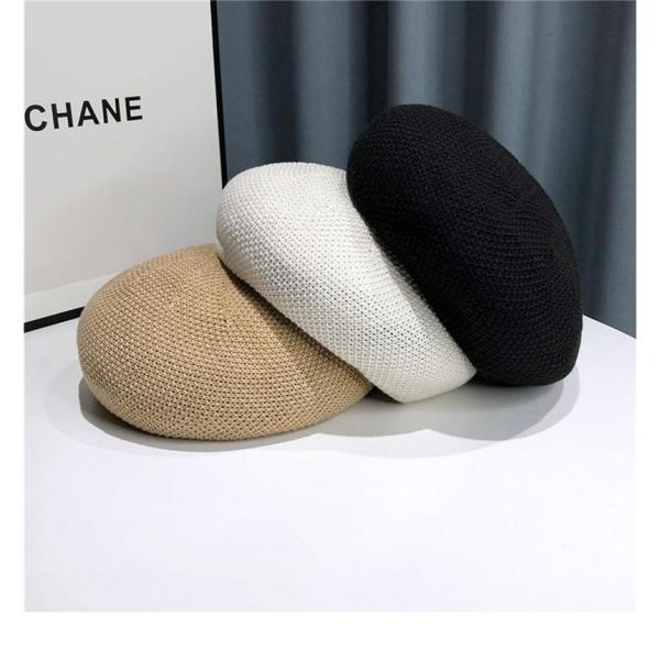 サマーニットベレー帽 レディース 春 夏 帽子 ぼうし 小顔効果 ファッション小物 小物 ハット リネンライク 伸縮性 無地 シンプル マリン