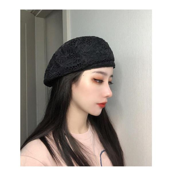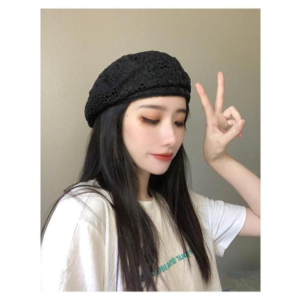 サマーニットベレー帽 レディース 春夏 帽子 レース 小顔効果 ファッション 小物 ハットリネンライク 伸縮性 ゴム 無地 シンプル