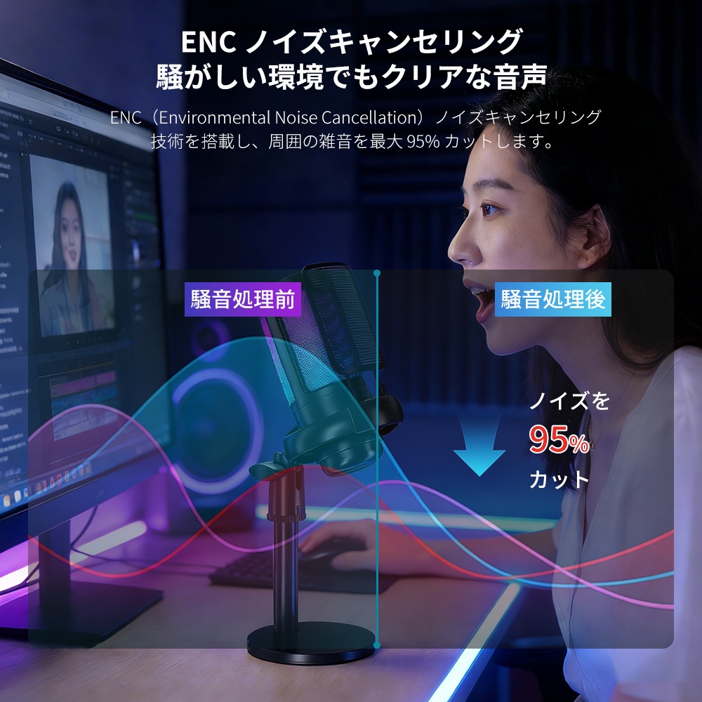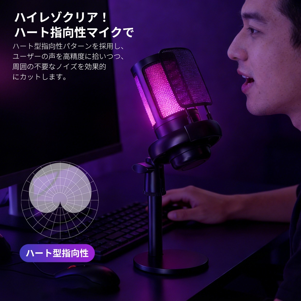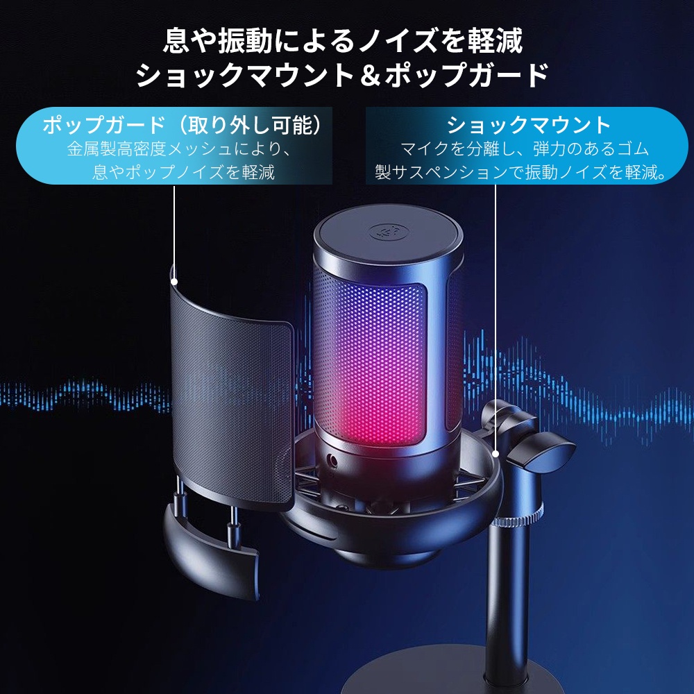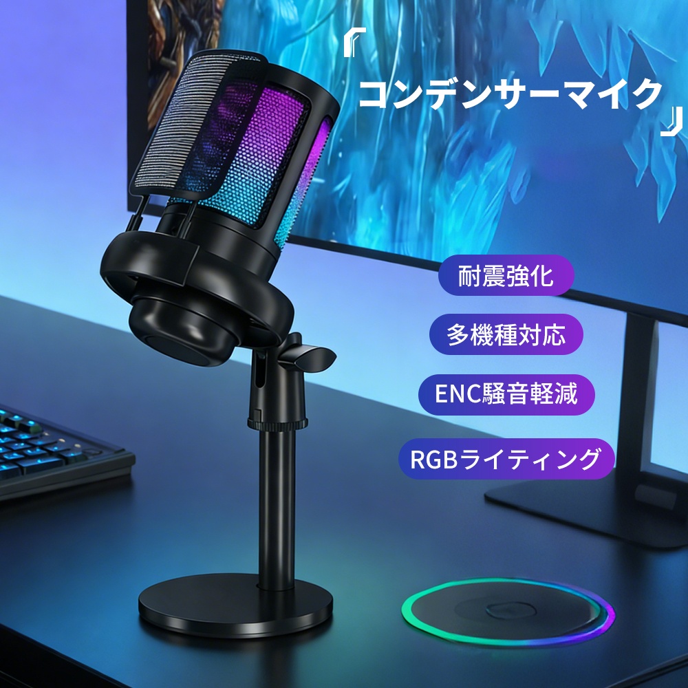 コンデンサーマイク ゲーミングマイク 録音 配信 スタンド 多機能対応 USB マイク PC コンデンサーマイク 騒音軽減 耐震強化 スマホ パソコン 会議 ゲーム実況