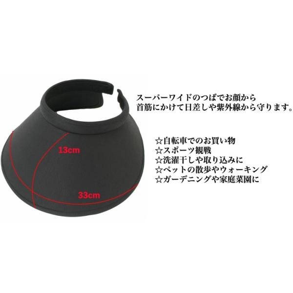 UPF+50 サンバイザー レディース 大きなつば 紫外線対策 耳も隠れる 黒無地 カチューシャタイプ