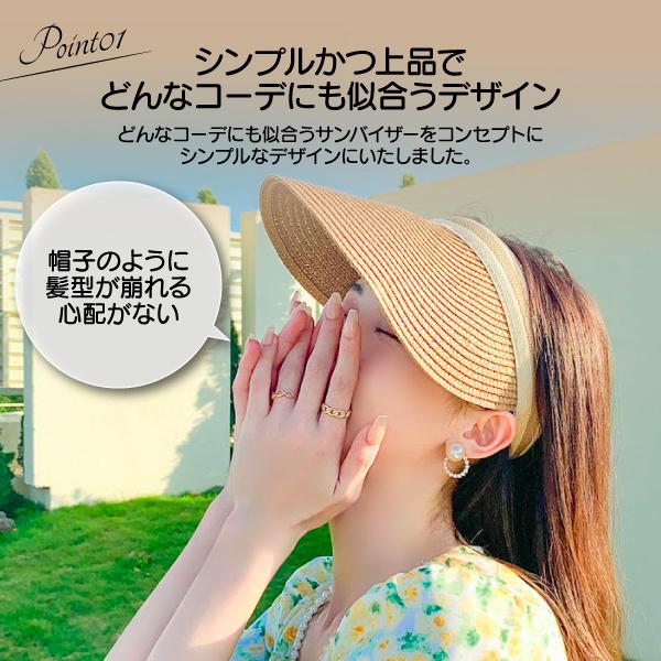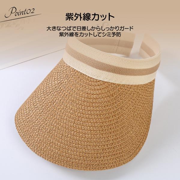 サンバイザー レディース 帽子 麦わら帽子 UVカット つば長 日よけ 紫外線対策 日焼け防止 ハット