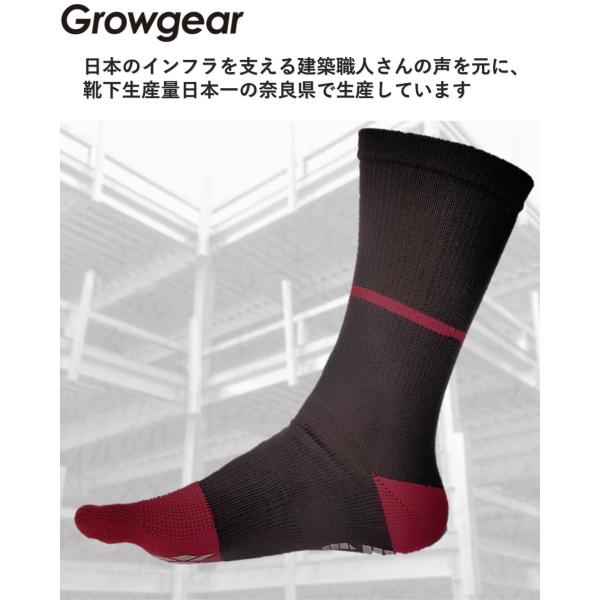 GROWGEAR 高機能 5本指ソックス 1足 M/L 4色 ロング丈 滑り止め 抗菌 防臭 消臭 日本製 五本指ソックス 5本指靴下 メンズ 作業用 クルー丈