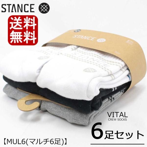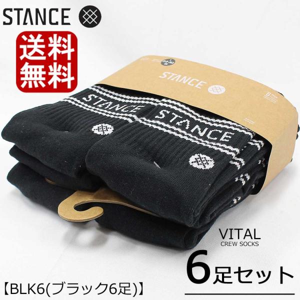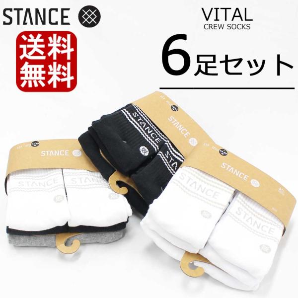 スタンス ソックス メンズ 靴下 6足セット STANCE SOCKS VITAL CREW バイタル クルー キッズ レディース 厚手 無地 白 黒