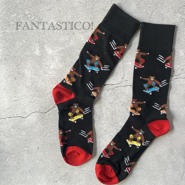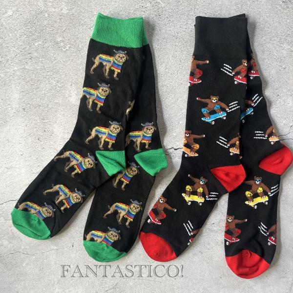 お得な2足セット★ラスタ犬とスケボーくまさん柄メンズ靴下★スケーターソックス グラフィックポップアート プチギフト