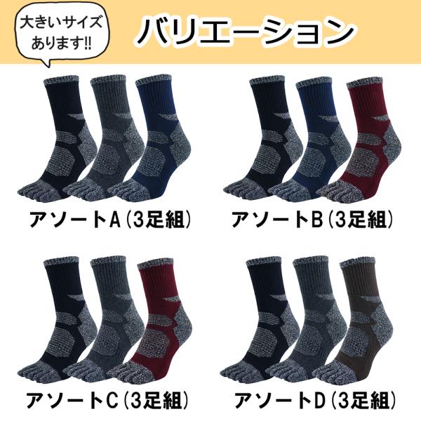 五本指 ソックス 5本指 靴下 メンズ 厚手 黒 ブラック 綿 100 無地 ハーフ丈 厚底 登山
