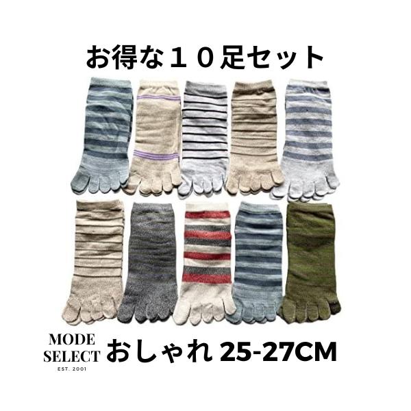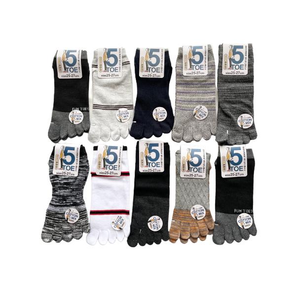 メンズ 5本指ソックス くるぶし丈 ショート スポーツ ビジネス 綿 蒸れない おしゃれ 25-27cm 10足セット(柄はお任せ) A10