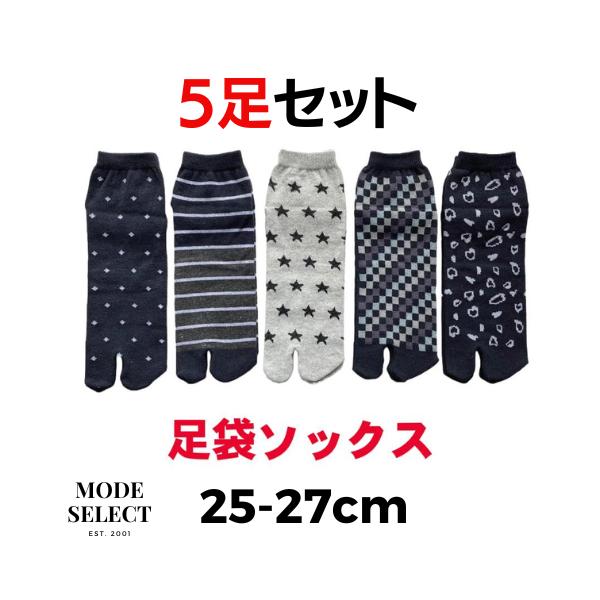 足袋ソックス メンズ 快適5足セット かかと付き 綿混素材 靴下 25-27cm(柄はお任せ)B06