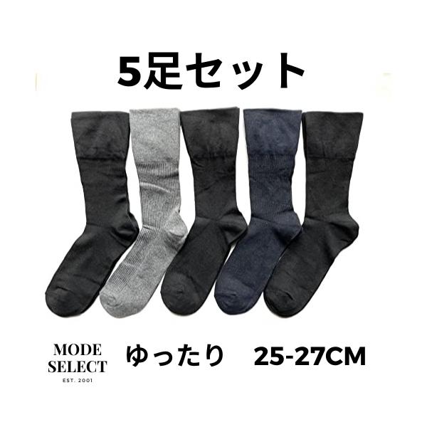 靴下 メンズ ソックス ゆったり 紳士 プレゼント 口ゴムなし ビジネスソックス 無地 綿 25-27cm 5足セット(色はお任せ)D05