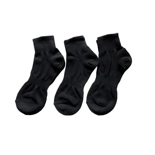 スポーツソックス 3P メンズ くるぶし 黒 ショートソックス 紳士 靴下 通学 通勤 綿混 ブラック 3足セット (25-27cm) D19
