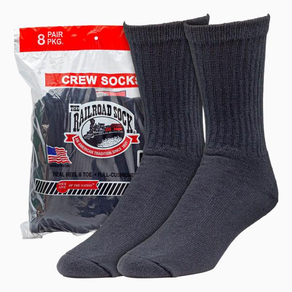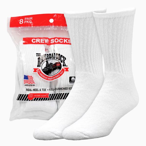 RAILROAD SOCK メンズ クルーソックス 24cm〜30cm ホワイト ブラック 8足セット 靴下くつした 白 黒 アメリカ製 USA おしゃれ 厚手 分厚い 25 26 27 28cm