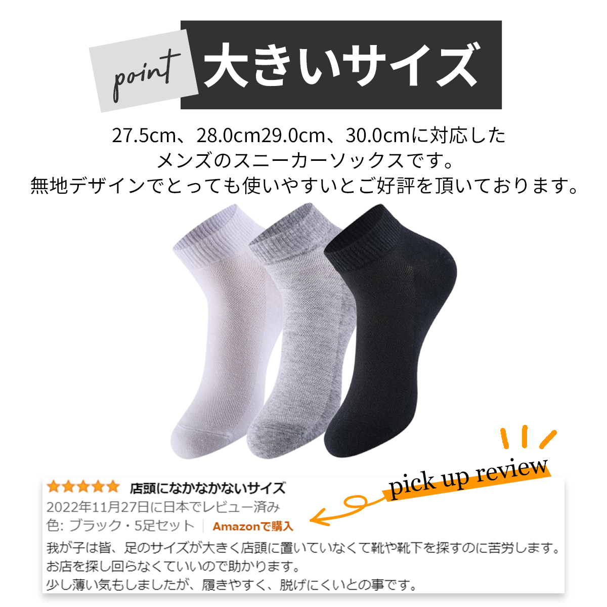 靴下 メンズ スニーカー ソックス 大きいサイズ 27.5〜30cm 5足セット メッシュ