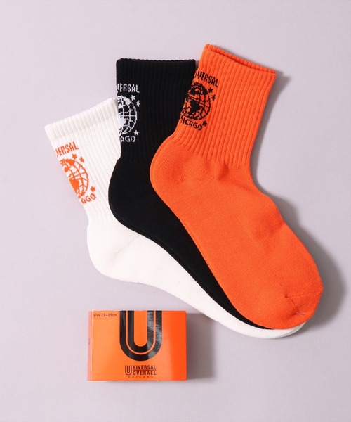 靴下 (LG)「UNIVERSAL OVERALL」「3足セット」アースロゴ クォーターソックス メンズ レディース