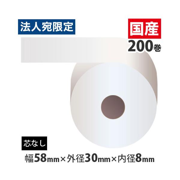 『代引不可』感熱紙ロール(コアレス) 『58mm×30mm×8mm』 200巻 RS583008 『返品不可』『法人宛のみ送料無料(一部地域除く)』