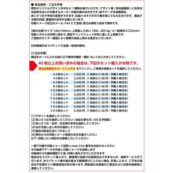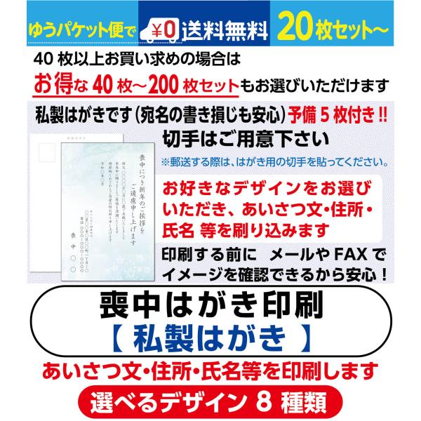 喪中はがき印刷 私製葉書 送料無料 20枚セット〜