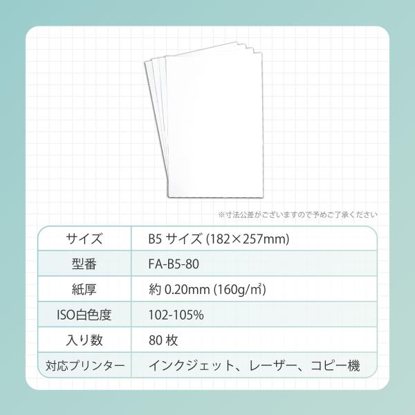 普通紙 B5サイズ 紙厚0.20mm 80枚入り 白 厚手 超厚口 コピー用紙 インクジェット レーザー 両面印刷 ISO白色度102% 大容量 ケント紙 上質紙 無地 FA-B5-80