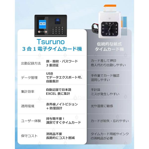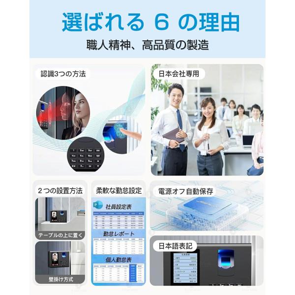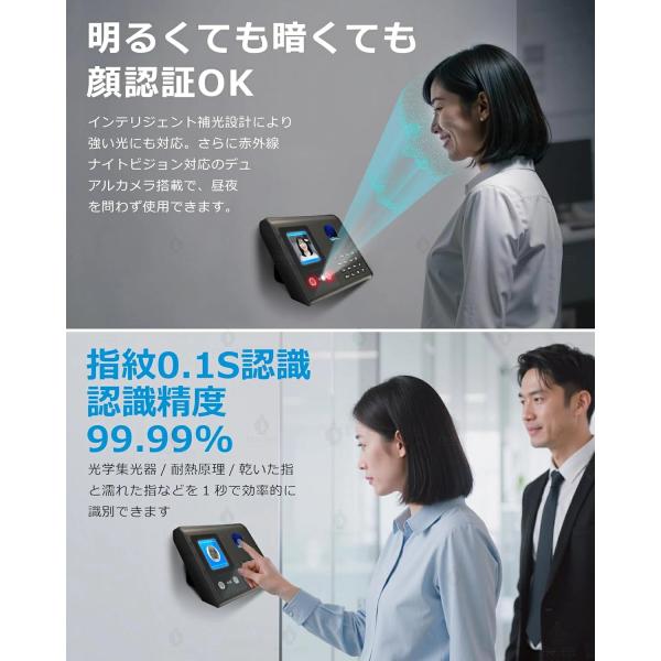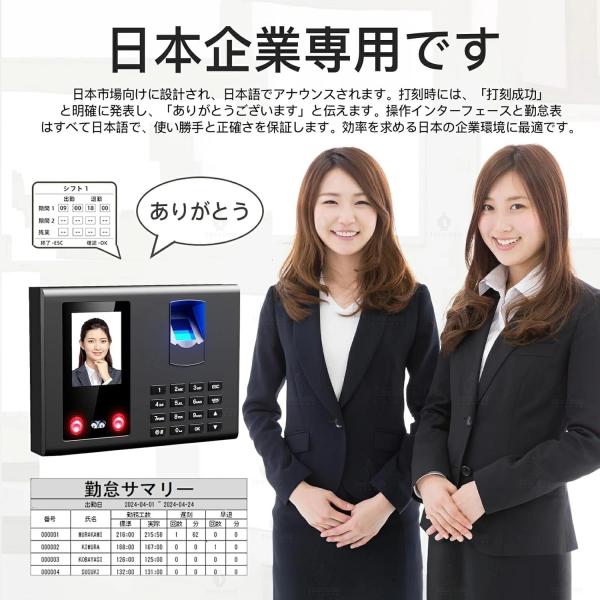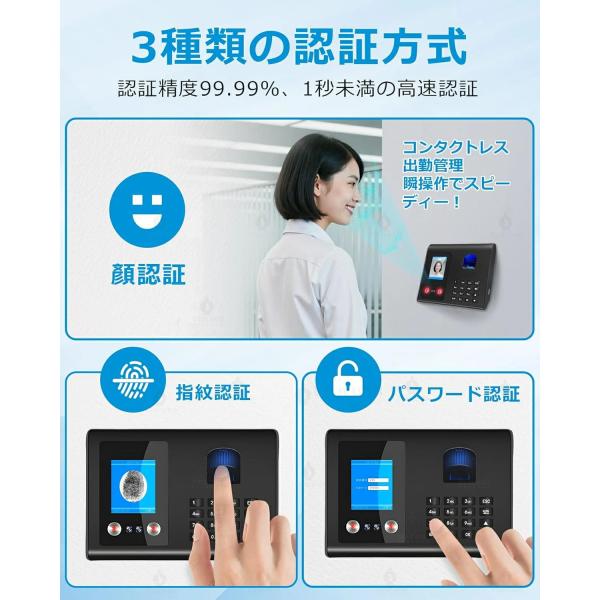 【三つの認証方式!】タイムレコーダー 充実のメモ欄 自動集計 勤怠管理 顔認証/指紋認証 集計機能なしでそのまま使える タイムカード レコーダー 本体 事務用品